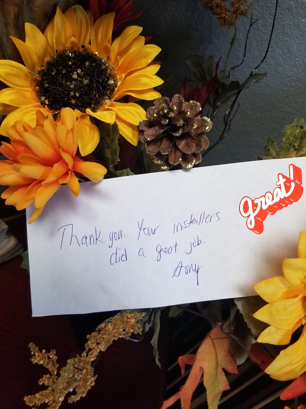 Thank you. Your installers did a great job.